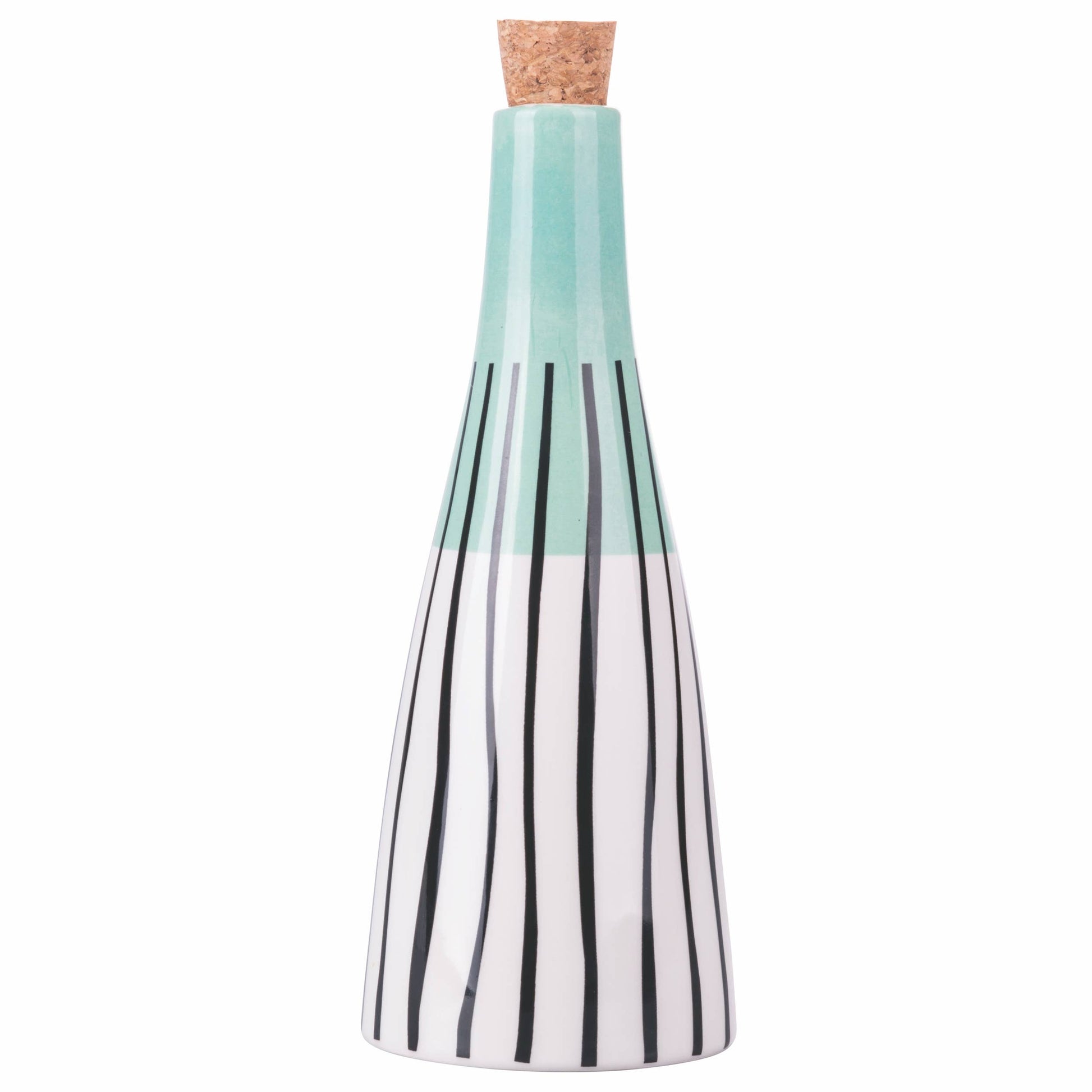 Striped Ceramic Oil / Vinaigrette Bottle With A Cork Stopper