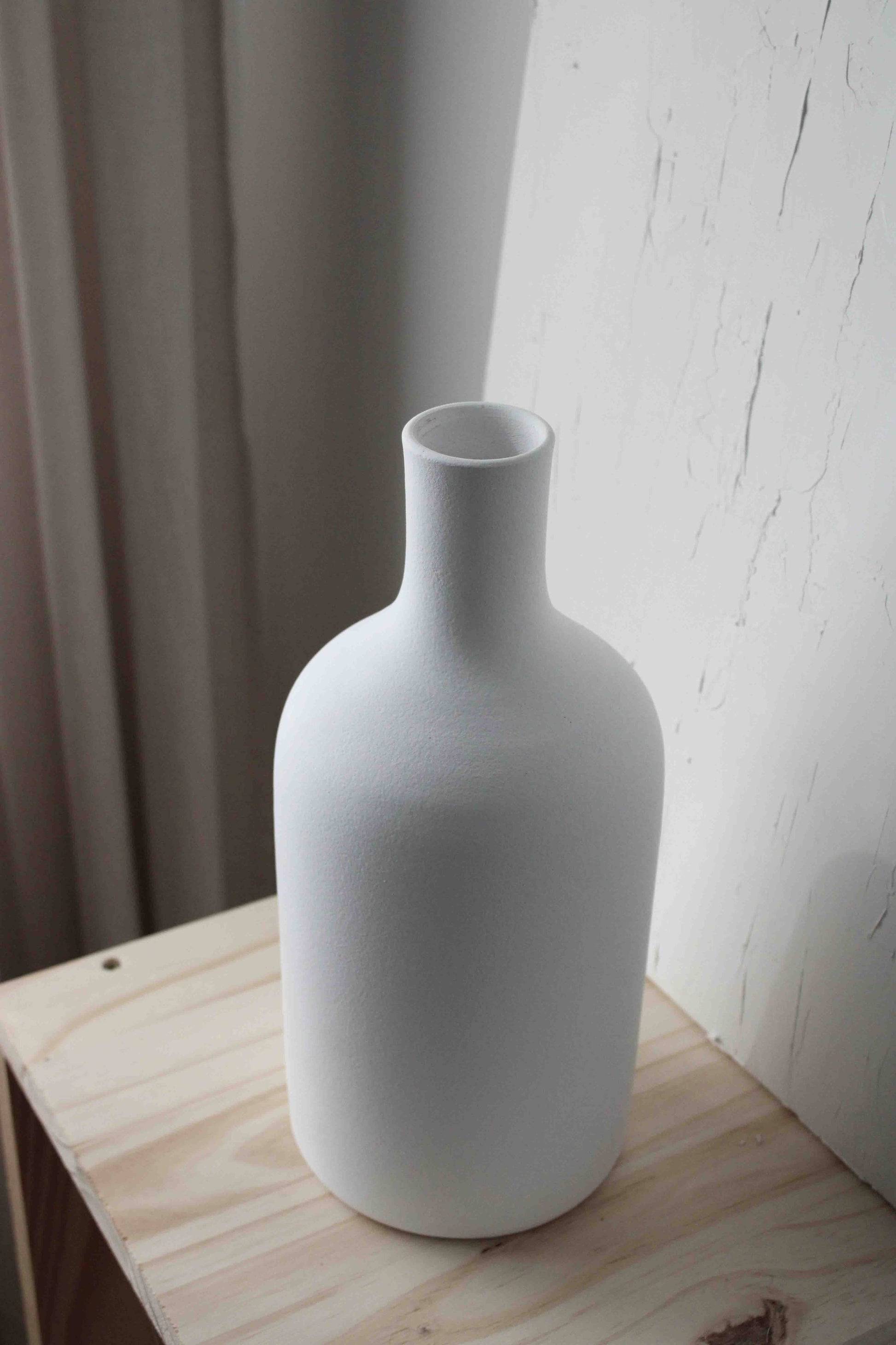 This handmade vase is crafted out of durable earthenware in Portugal. No two pieces are identical and are part of a limited production of this particular range. This contemporary and minimalist vase is waterproof and allows you to put in freshly-cut flowers, dry flowers or you can use it without adding anything.