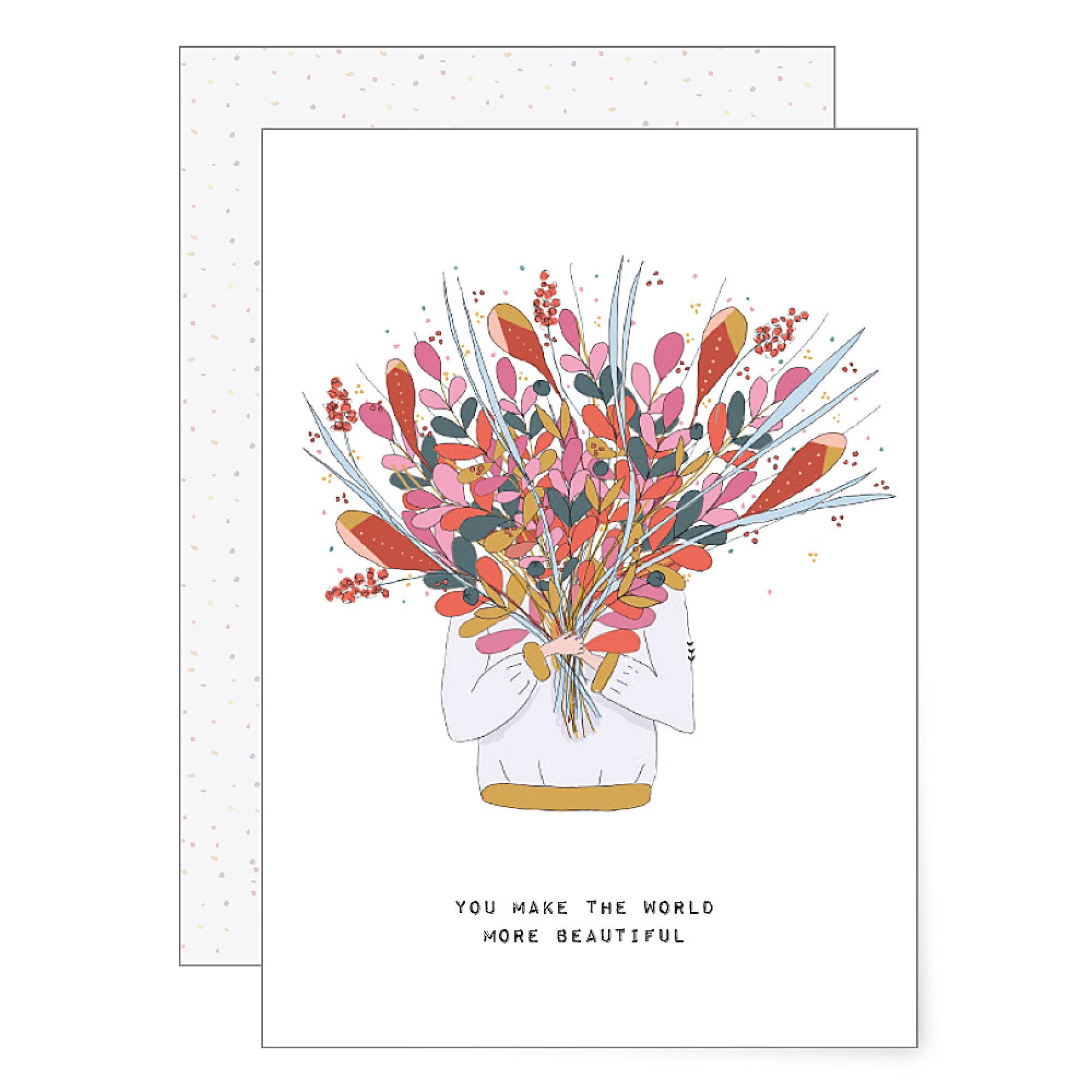 MIAO folding card with envelope packed in compostable cellophane, 4/0 printed in color on high-quality Munken 300g paper in size DINA6