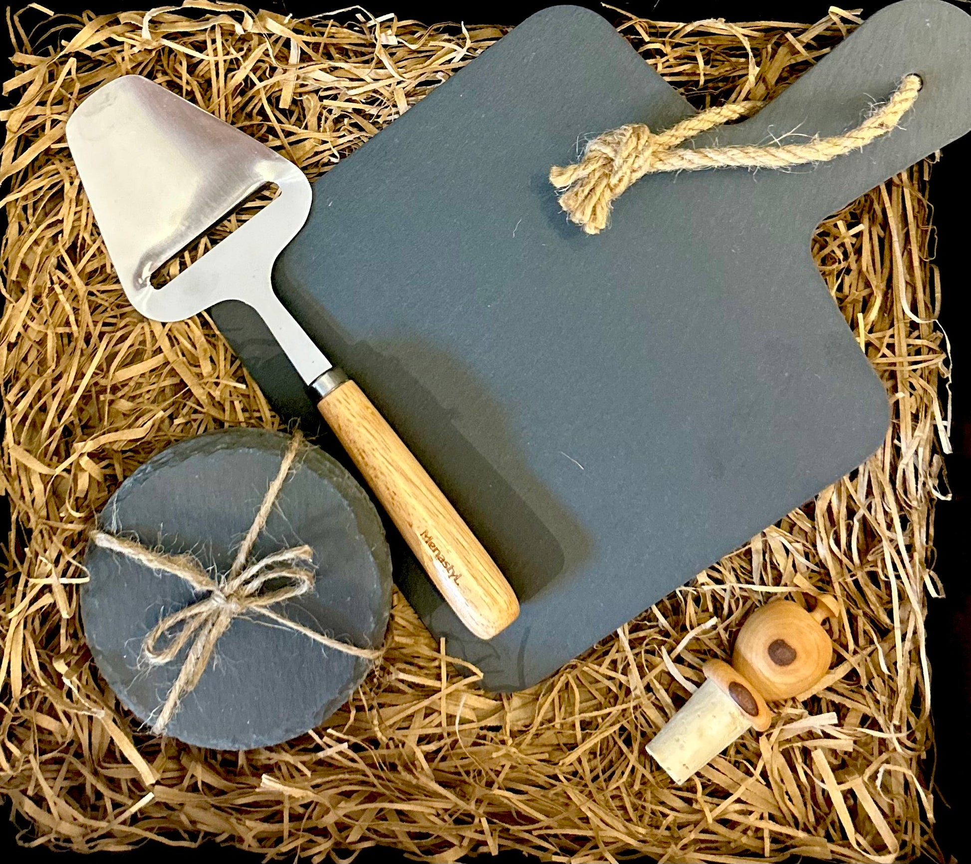 Measurements : Slate cheese board 26 cm (length including handle) Width 18 cm