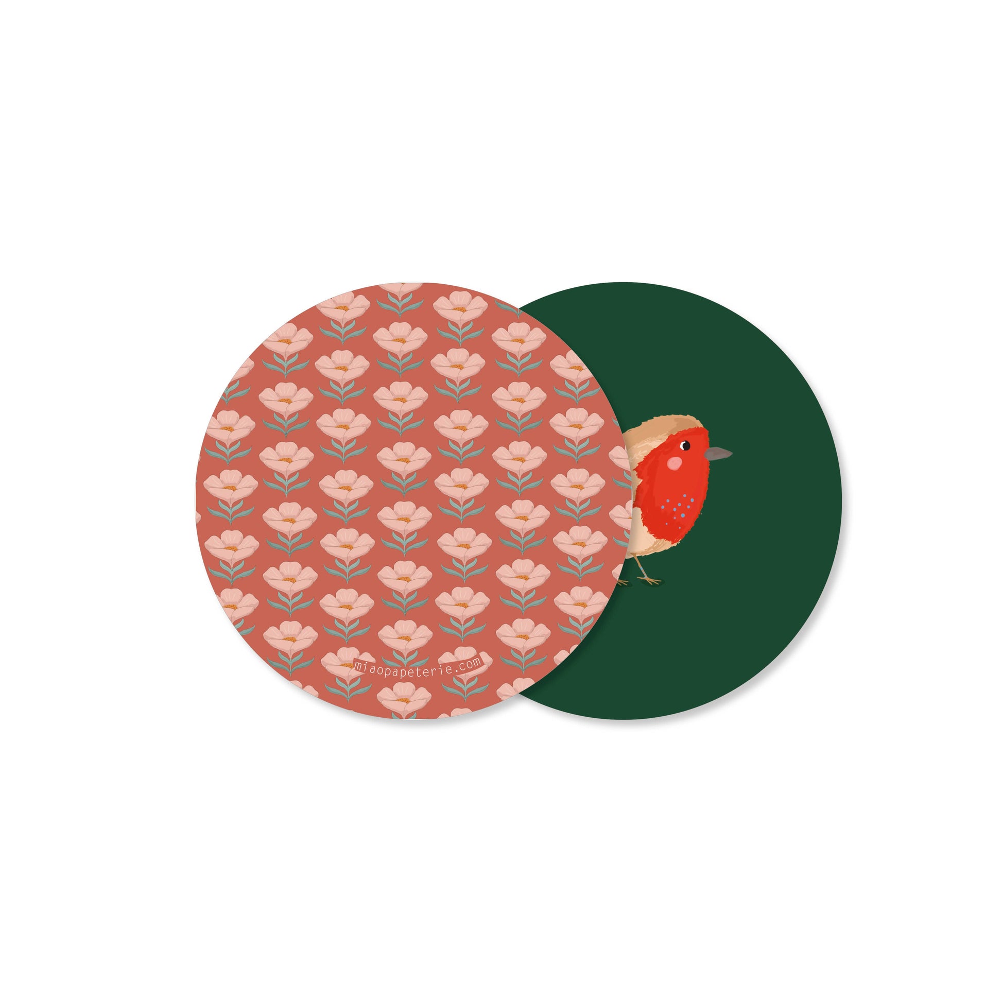 A set of 6 Robin coasters in twine (made from FSC Certified wood pulp) 10 x 10 cm