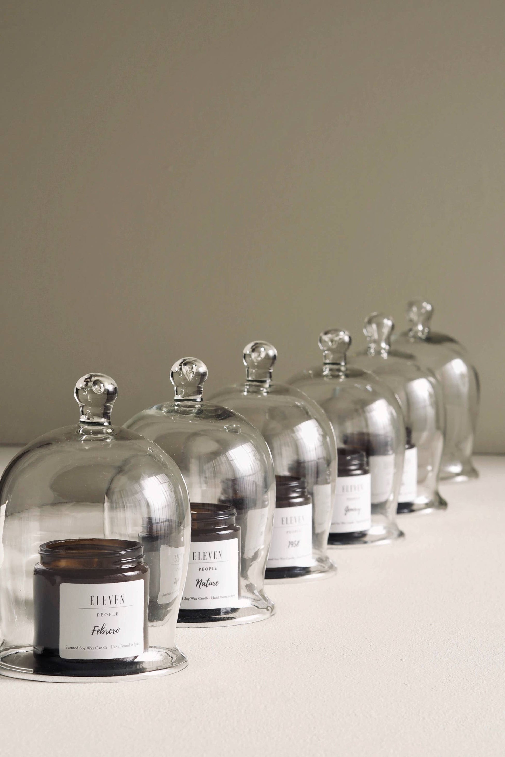 this glass dome is perfect for displaying your candles at home and is also functional. We recommend using it to safely and cleanly extinguish your candle. This stops smoke from being generated.
