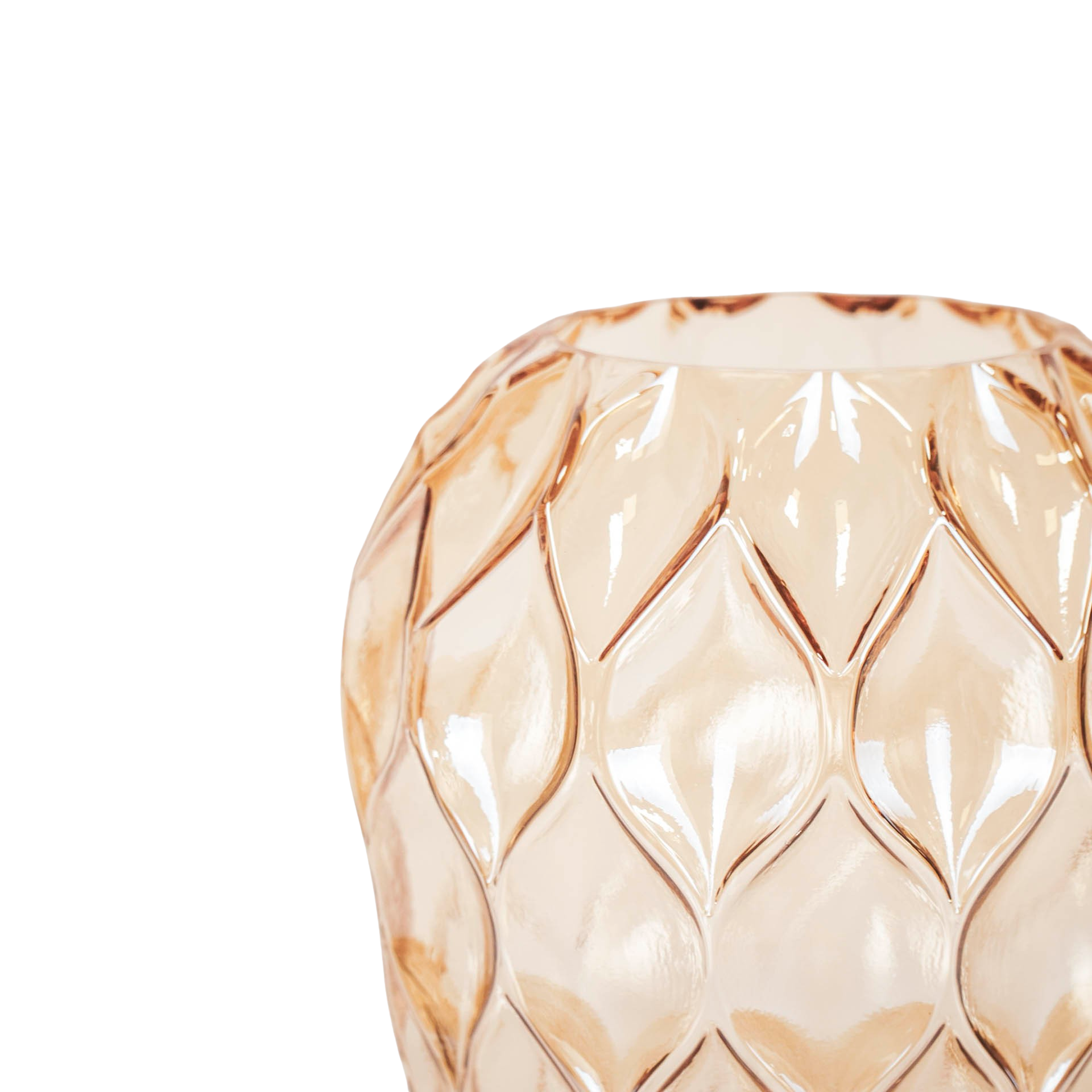 Stunning large glass vase in an apricot \ amber colour. The textured design of the glass, along with the delicate colour makes this vase a real show stopper!