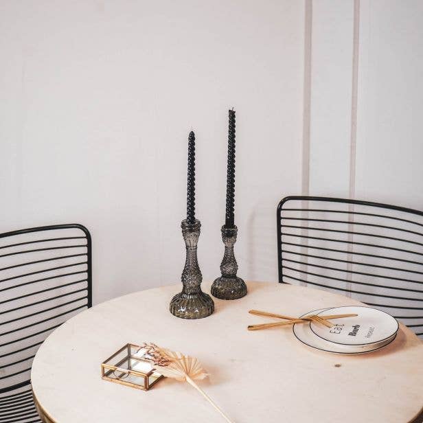 Bring a touch of vintage charm to any space with this elegant smoked glass candlestick. With its elegant design and sophisticated look, this candlestick is a perfect addition to table decorations or interior styling.