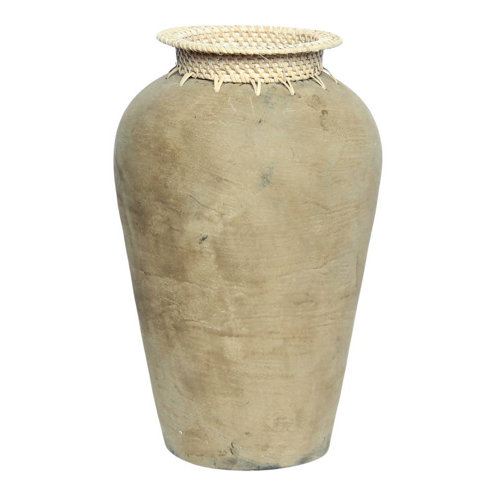 The rattan detail around the neck of the vase enhances the natural elements this vase brings. It will add texture and warmth wherever it is placed.