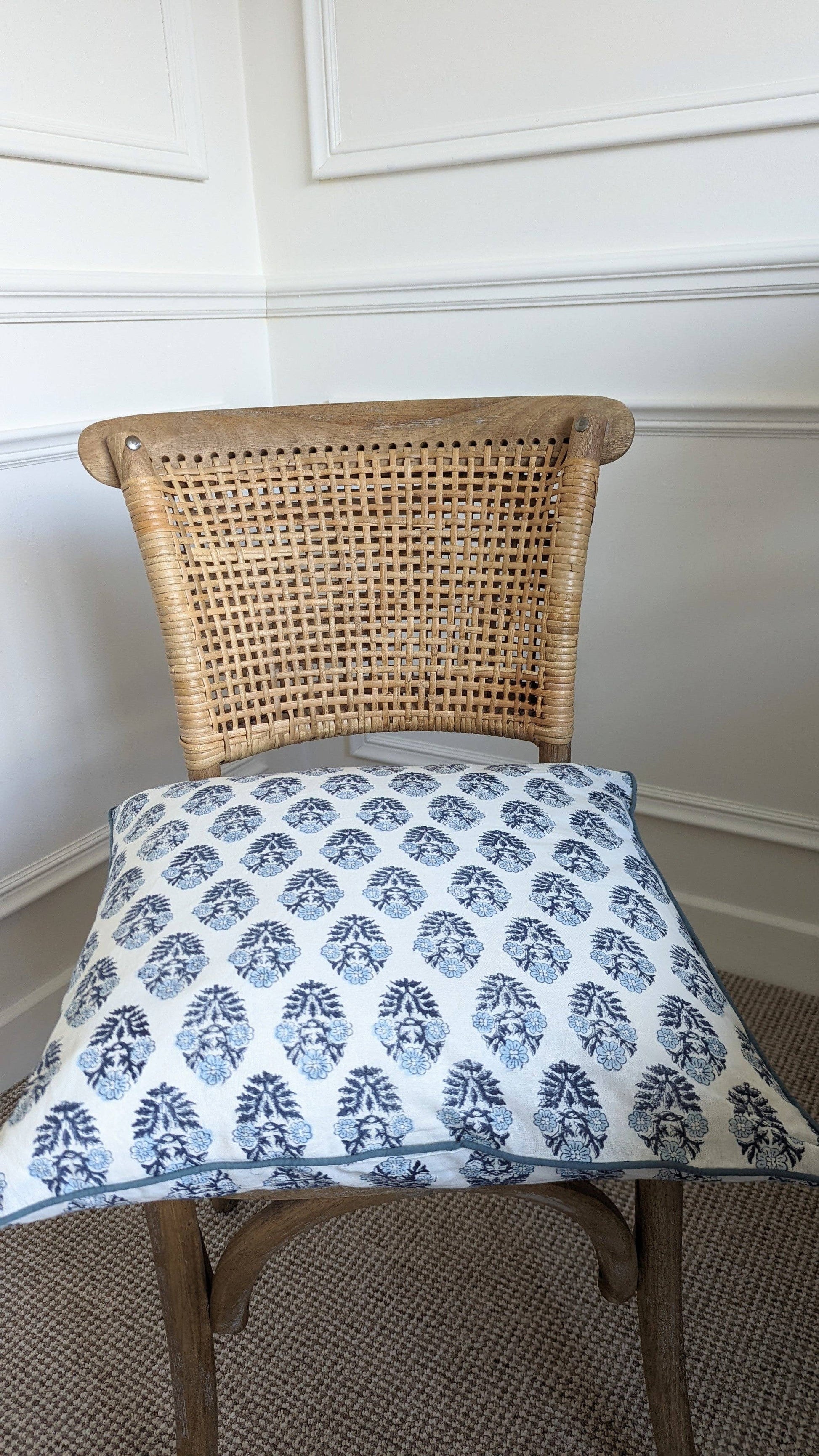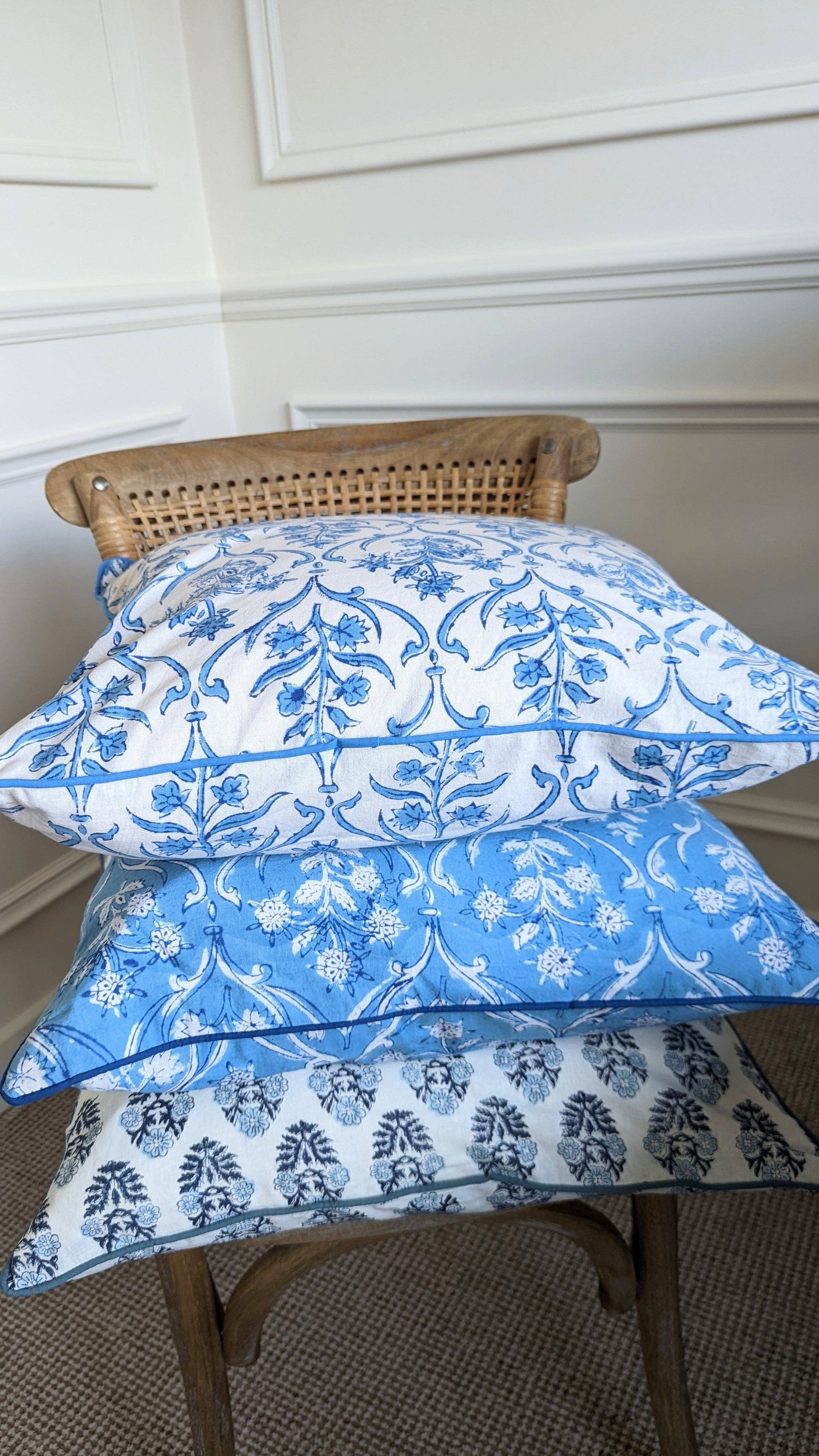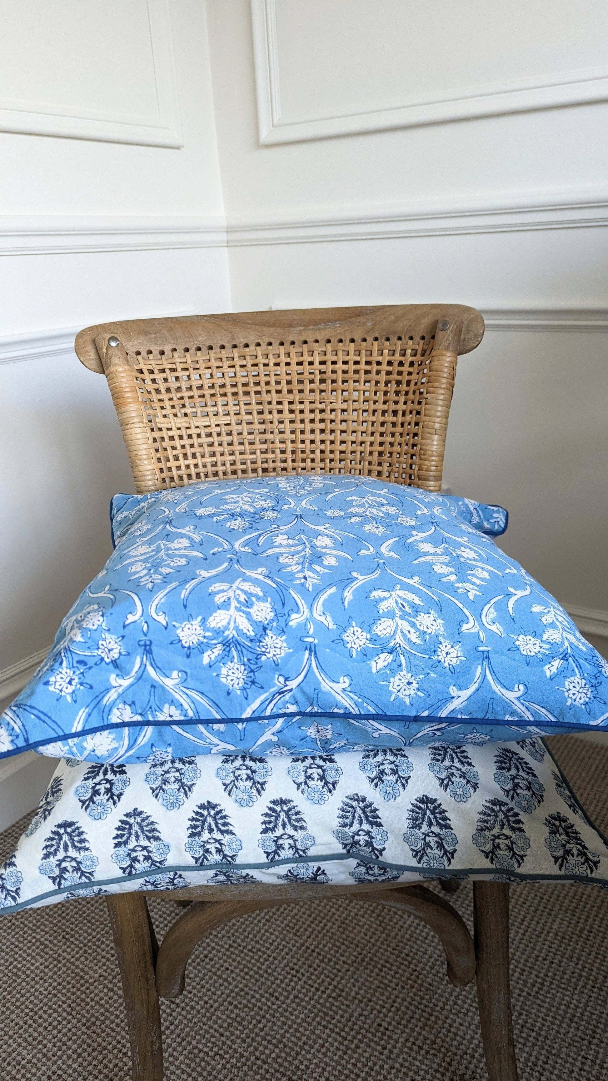 The Pia cushion covers have a beautiful floral print with different tones of blue in a fab white cotton base. As they are hand printed, each one will have a unique look. A perfect pop of colour for your sofa or bed.