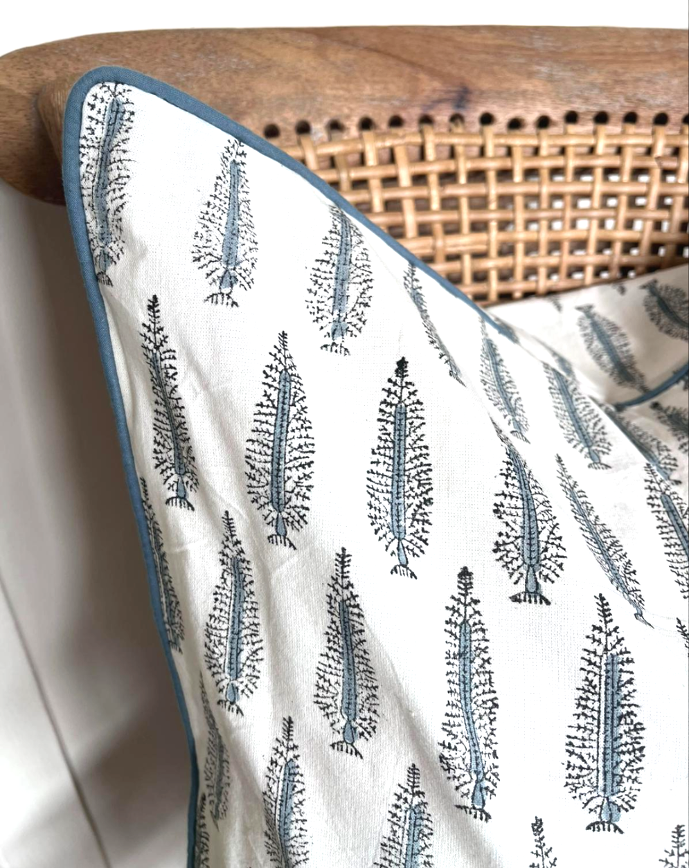 The Poppy cushion covers are a beautiful blue tree print. As they are hand printed, each one will have a unique look. A perfect pop of colour for your sofa or bed. Fill not included.