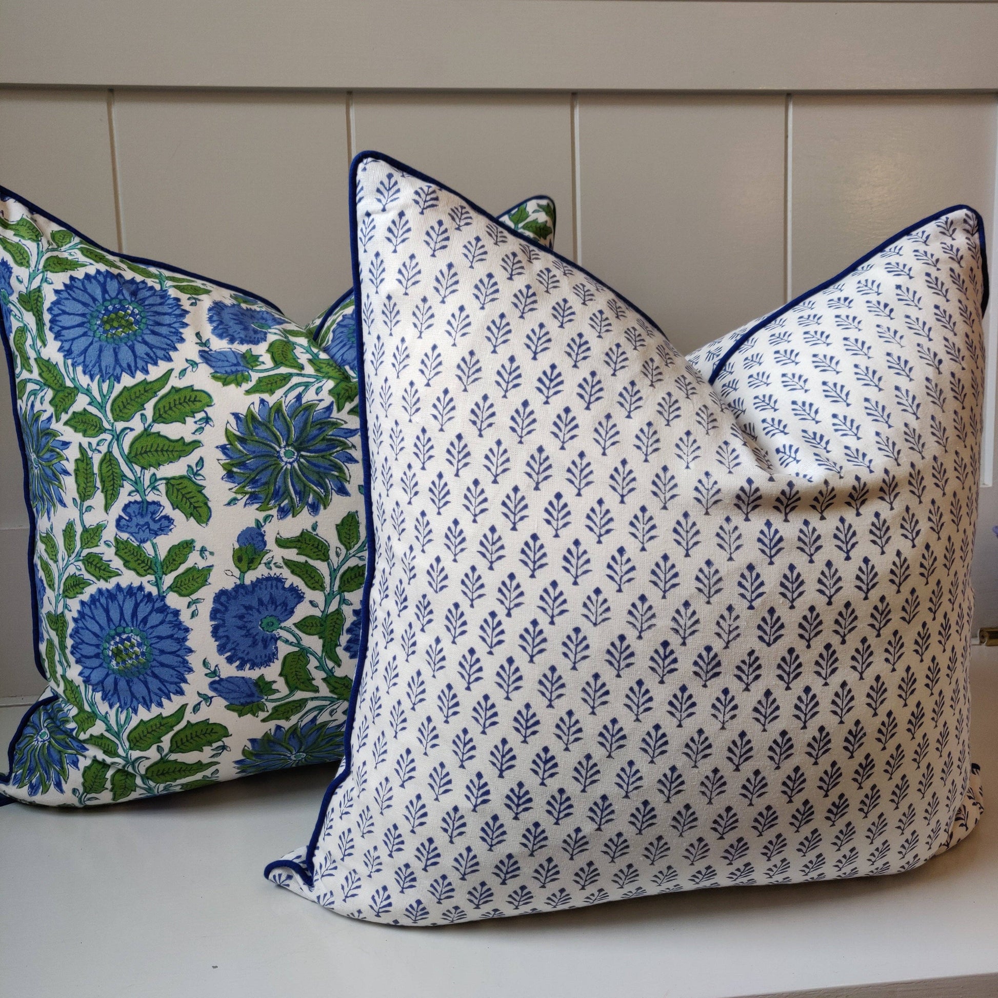 A bestseller! The Sofia blue cushion covers are a beautiful print in bright blue. As they are hand printed, each one will have a unique look. A perfect pop of colour for your sofa or bed.