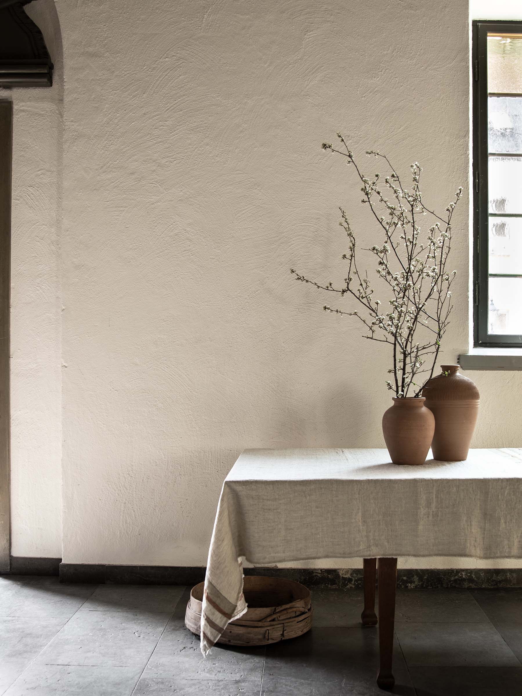 The urn can be styled in any room of your home, and can also be placed outside on your patio or terrace. If placing outside, we recommend that it not be placed on any sensitive surfaces as the earthenware can let moisture through and leave marks.