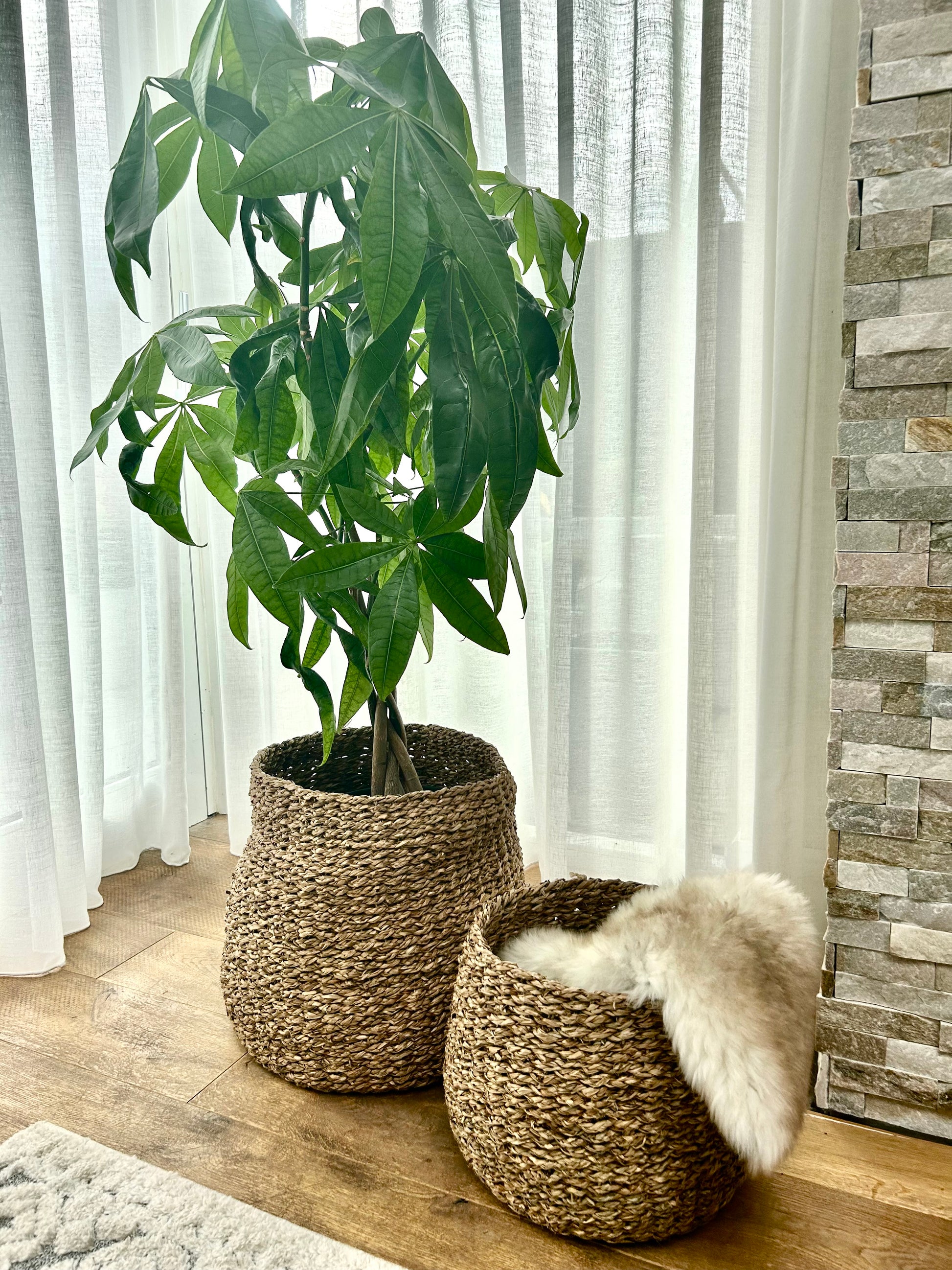 These fabulous seagrass baskets are an ideal addition to any interior. Of course, they provide storage - we're thinking blankets, throws, kids toys. But these multifunctional products are far more useful than just storage. They're an addition to any interior and we just love styling them with some beautiful foliage. They add a natural, textural element to an area that may have a lot of stone / metal (like a kitchen or entrance hall).